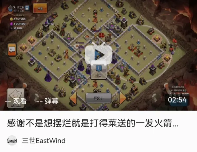 回到标题,为什么说这是个摆烂的配兵呢?因为在实际操作过程中,产生了各种不细节,各种前戏崩掉,部队跑偏结果还是三星了。从前戏就开始摆烂,由于没有超级炸弹人,天女前戏搞不好只能清个边还得把两个大招提前全交代了。部队进阵各种类型的跑偏,最离谱的是大哭流和后面的超巫超弓脱节,狂暴法术都不好给。不好给就摆烂随便给,部队能打多少是多少,活着就行,单头锁大哭流也懒得给冰冻,这种召唤生物活着为了死,死着为了活。只要使剩下的对空弩+法师塔的数量≤冰冻法术的数量就完事了。