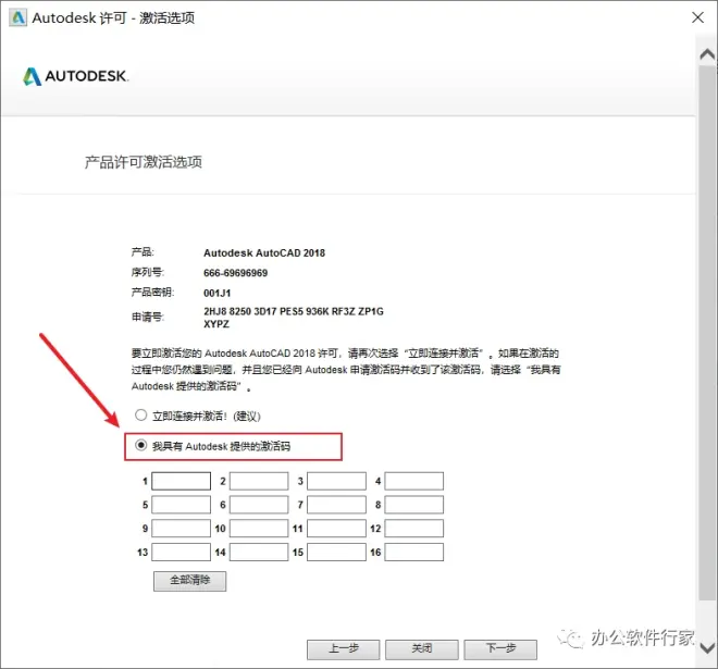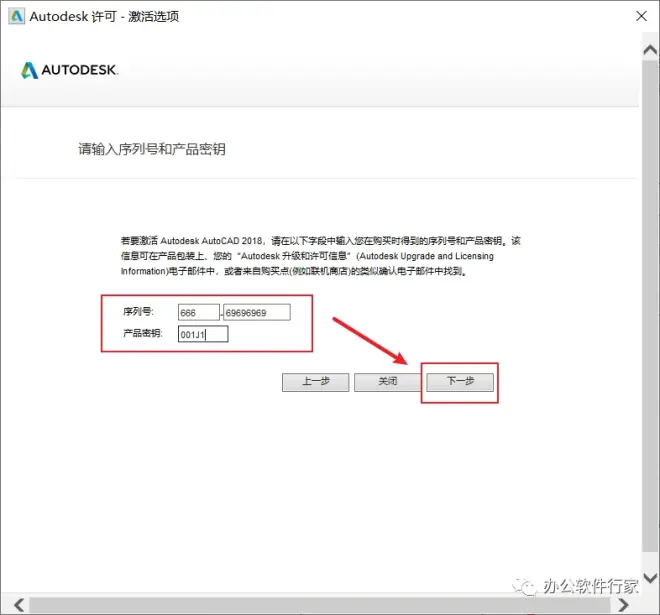 24.将生成的激活码复制到激活码输入框,点击“下一步”(复制和粘贴只能用快捷键"Ctrl+C"和”Ctrl+V”)