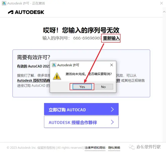 18.如果出现以下提示,点击“重新”,点击“Yes”,重复步骤16~17