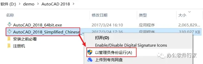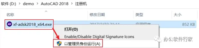 21.选中“xf-adsk2018_x64.exe”鼠标右键选择以管理员身份运行