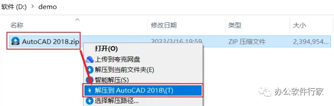 1.选中下载好的安装包鼠标右键解压到“AutoCAD 2018”文件夹