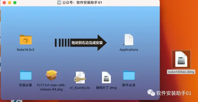 1,双击下载好的安装包,打开镜像,然后选将nuke14直接拉到applications里面。