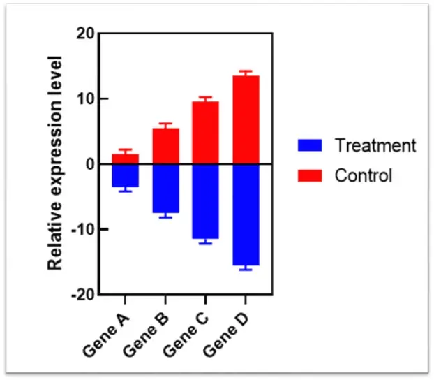 4.双向柱状图(正负条形图):双向柱状图多用于展示包含相反含义的数据的对比。其中图表的一个轴显示正在比较的类别,而另一轴代表对应的刻度值。双向柱状图一般用于正负两份相反数据的对比。