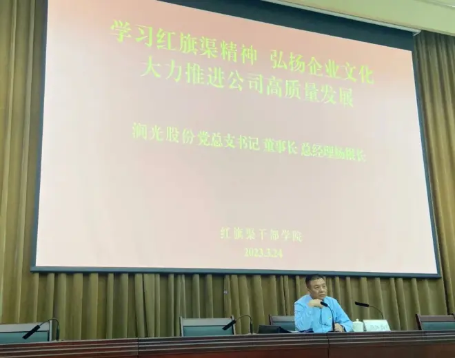 开班仪式上,涧光股份党总支书记、董事长兼总经理杨根长发表了题为《学习红旗渠精神,弘扬企业文化—大力推进公司高质量发展》的主题致辞。他向大家明确了此次培训的深刻意义,高度凝练了涧光多年发展历程所经历的四个阶段。杨总通过栩栩如生的事例,发自肺腑地分享了一路走来艰辛的创业历程,带领大家回顾了涧光企业文化与“自力更生、艰苦创业、团结协作、无私奉献”红旗渠精神的四点高度契合之处,引领员工们学深悟透,号召大家抖擞精神再出发,团结拼搏开新局,凝聚推动企业高质量发展的强大动力。