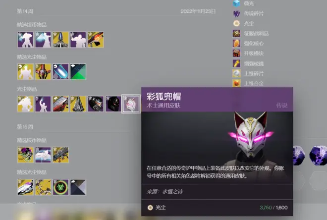 18.功能网址布瑞科技Braytech可以查看,本次赛季的,每周商店特卖和光尘特卖