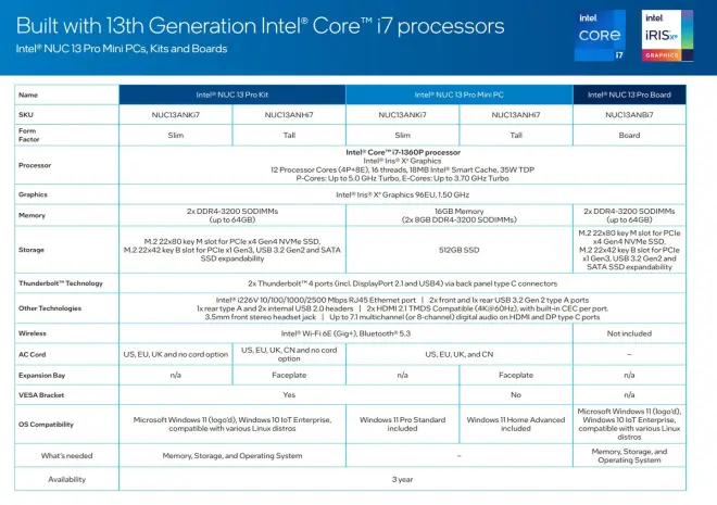 英特尔正式发布 NUC 13 Pro "Arena Canyon",可选英特尔 i7-1370P 处理器