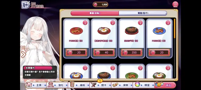 由于笔者全部强化完成就不展示了,强化的主要内容就是米饭—甜点/意面—圣代,用米饭/意面来快捷提升等级,当然也可以刷关卡来获取经验(仅限甜点),但是经验太少了。 米饭/意面获取方式