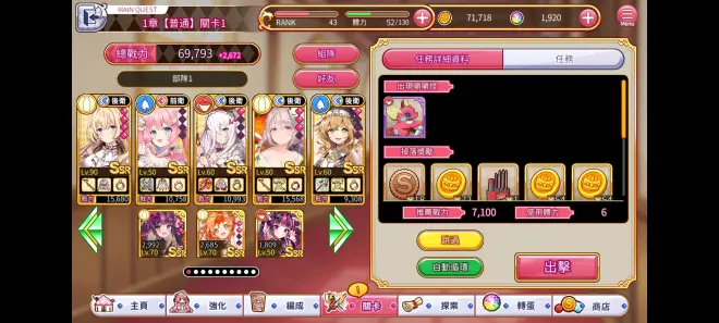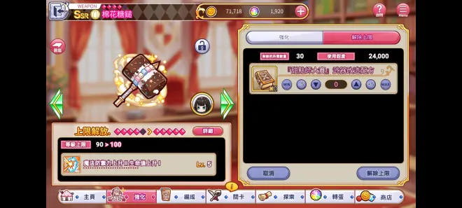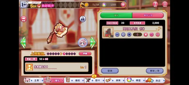 上下分别是笔者个人账号的两个ssr,上面的是常驻池子角色,下面的是限定活动池子角色,除了等级之外其他都相同,但是战力差距却不大,这就是常驻和限定的区别 首推池子介绍完了接下来看看角色的强化吧 PS:圣代甜点大致相同,故此不多做演示