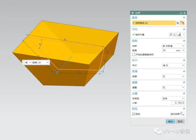 2.对称拉伸30mm