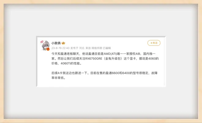 IT之家 8 月 19 日消息,据博主“小敌鸽”消息,AMD 将推出一款 RX 6750GRE 显卡,RTX 4060 价格,RTX 4060 Ti 性能。
