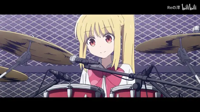 一组仰视的波奇和虹夏(暗示角色的高光)、跟着节奏抖动的听众,给“演奏”的场景做好了铺垫。“跟节奏”也就很好地移植到了舞台的灯光上。