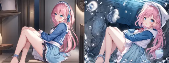 上方对比图,前者是加了blue eyes的前后对比,后者是加了underwater的前后对比,即使在tag中blue eyes的位置比underwater要高出十几位,但underwater对画面的影响程度显然比blue eyes更大。