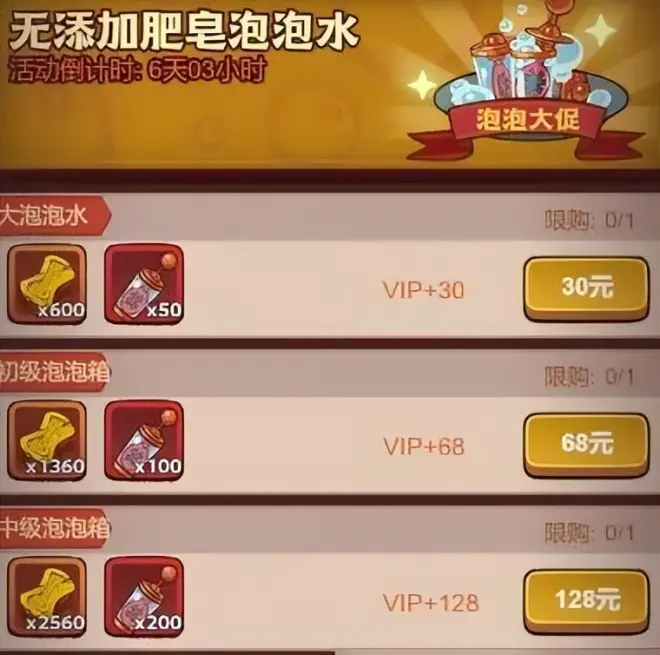 商店购买:你可以直接在泡泡店购买泡泡水。购买的商品不仅有泡泡水,还有金砖奖励。想要获得第一层奖励的玩家可以在泡泡店购买。