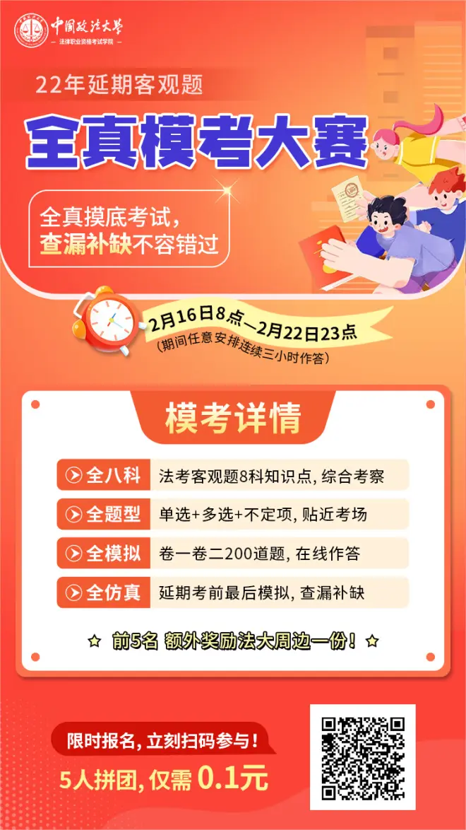 面向22年延期客观题考生的模考大赛,全仿真客观题考场,旨在帮助同学们提前适应考场、增加信心!