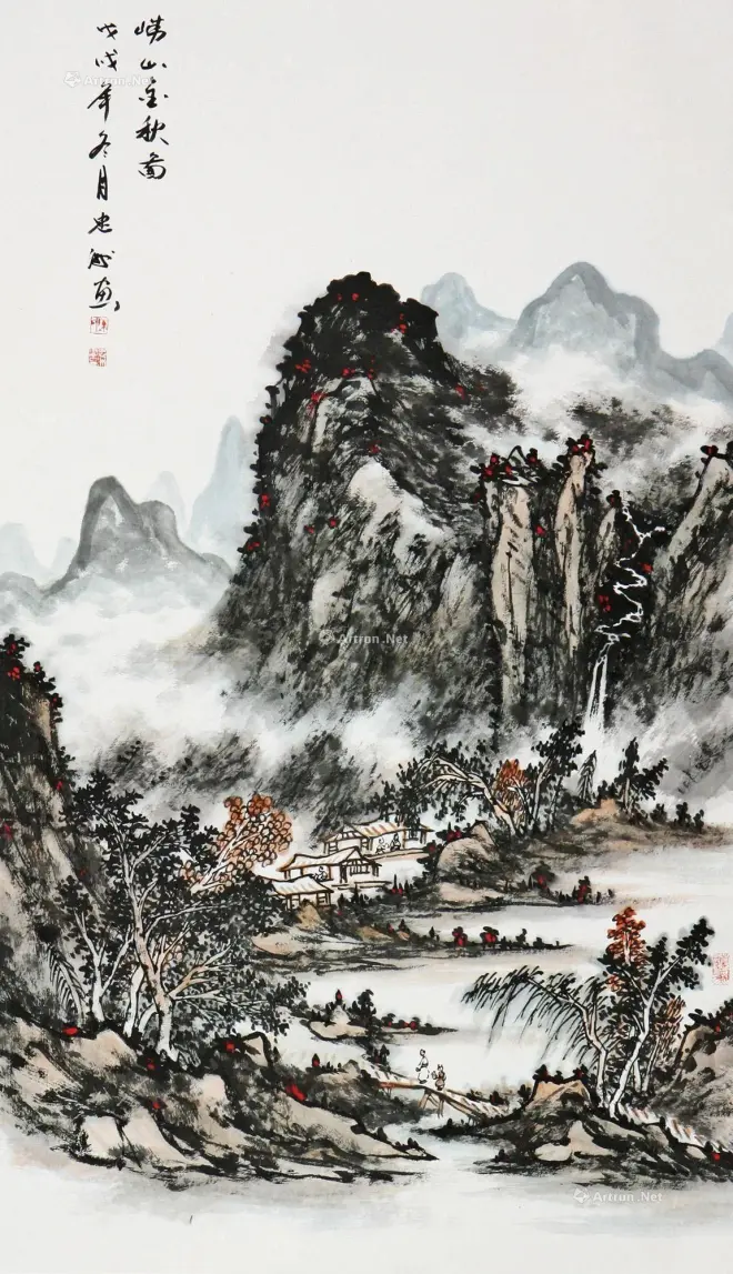 1、《秋日崂山》,作品拍卖成交价181.7万