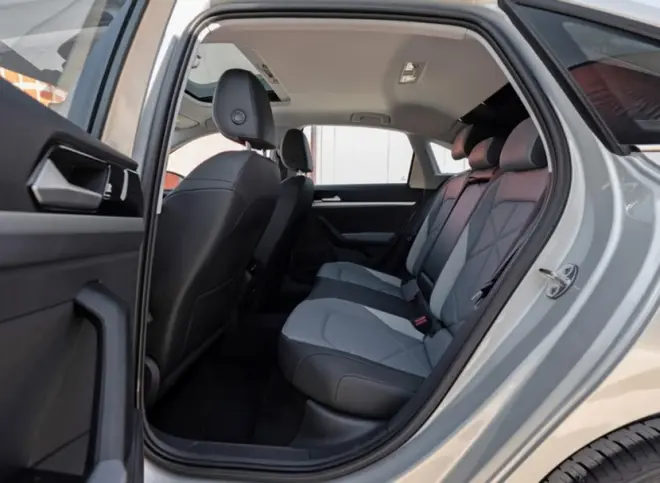 车身的侧面是笔直的线条,一看就是大众惯有的设计理念。车身也是很常见的三厢轿车,因此内部成员的头部空间不必担心。尾部是常规的两侧尾灯,内部纹路比较复杂,视觉效果出色。底部用银色的镀铬条做了装饰排气。在这部分常规版本和星空版也有区别。星空版做了一定的运动化处理,让视觉上更活跃。