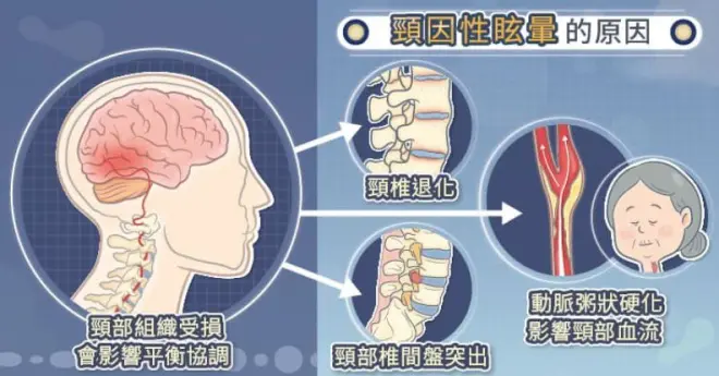 一名患者在某次去买咸酥鸡的路上,见路旁突然冲出一条汪汪,连忙紧急刹车,脖子似乎被大力地甩了一下。之后没几天,这名患者不仅觉得脖子痛,还开始觉得晕晕的,似乎人飘飘的,眼睛无法聚焦,还有点恶心想吐。就诊之后做了不少检查,医生告诉这名患者,这是“颈因性眩晕”,是平常颈椎就退化严重,又遇上一次突然的甩晃而造成的。