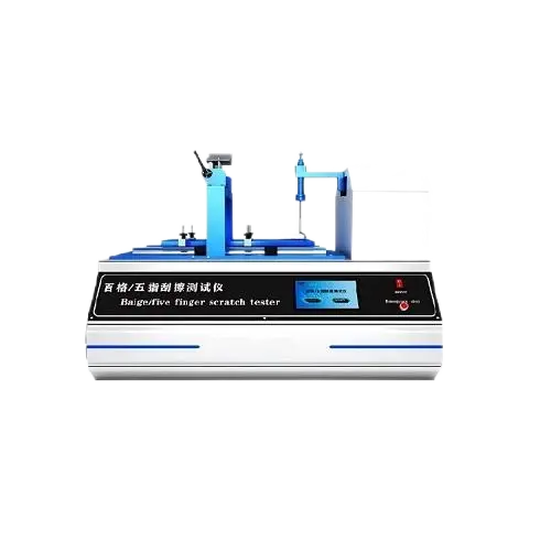 五指/塑料指刮擦试验:试验平台上的试样接触五个刮指或1个塑料刮指及其上方施加的砝码重量。试验过程中,试验平台移动,刮指在试样表面留下划痕。根据划痕的深浅判断试样的耐划伤性能。试样可为塑料板、涂有油漆和清漆的测试板等。