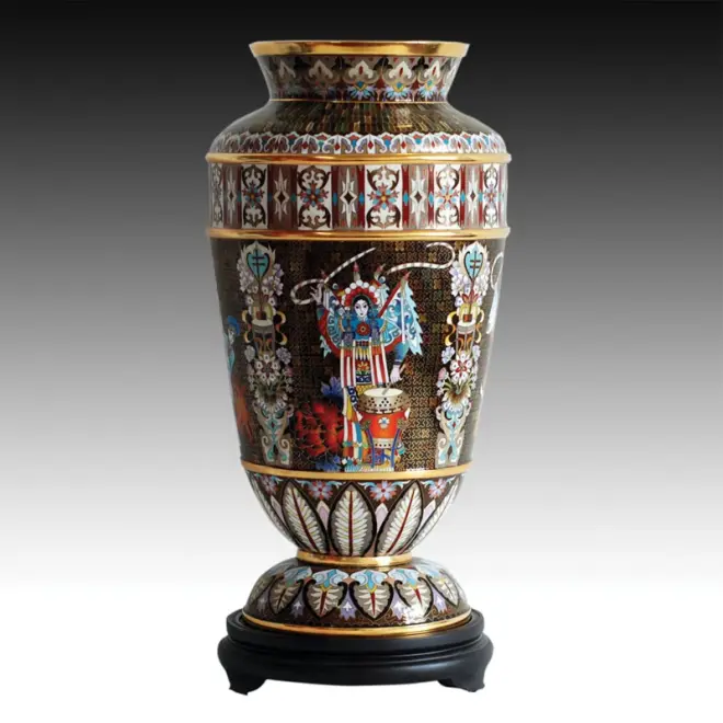 【藏品名称】景泰蓝《戏纹瓶》张同禄大师作品
