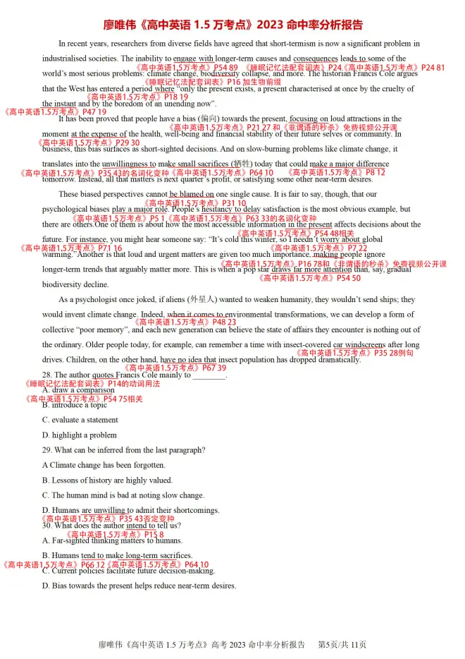 全文一共出现25处词组短语和固定用法类的要点,《高中英语1.5万考点》全部命中。难词偏词3处,见于《睡眠记忆法配套词表》。