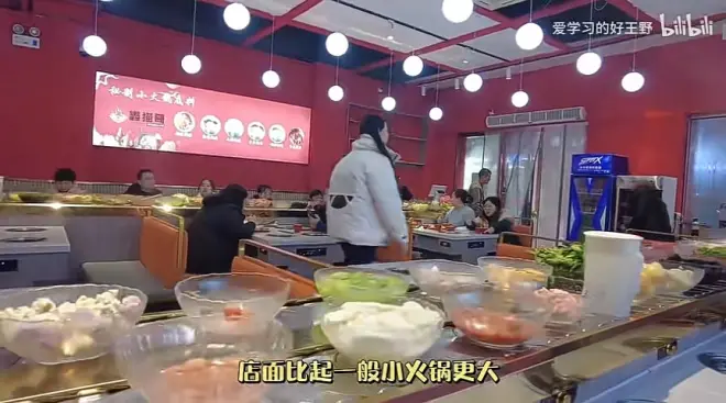 1.自助小火锅27.8/位,店面比起一般小火锅更大,有两条流水线来回折腾,大中午的客人还是很多的