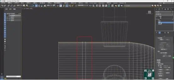 在参数中勾选【焊接内核】回到修改器列表上一级,进入顶点次物体级别,我们要将顶点焊接。按显示最终,选中线的顶点,沿着Z轴往下放,当距离很小时,会自动进行焊接,这样这里的小圆点就焊接闭合了。