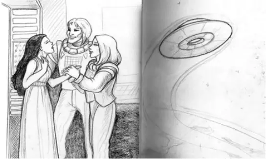 我泪流满面地抱着托尔・汉(Thor Han)的双臂,把脸藏在他的头发里。从我的手指间,我能感觉到他蓝色制服的质料有点粗糙。我了解他们的制服会闪闪发光是由于像盔甲一样的金属微小保护颗粒反射而形成的。他强而有力地抱着我,开心地笑了。天呀!他的双臂真是强壮有力。他颈部的皮肤有种奇怪的香味,好像香草味,他的身体好温暖。我可以感觉到他柔软又有丝质感的头发落在我的脸上,此时此刻,我脑子里唯一的想法是:这是家。托尔・汉(Thor Han)就像是我的哥哥一样,我真正的家人。‘我好想你’,他在我的颈子上低声说。他温暖的呼吸令我起鸡皮疙瘩,我也同样响应他。我们不愿彼此放开双手,但其他人也在等待拥抱:那位有对迷人绿色眼睛的金发女子,她对我从来没有表达过如此温暖的情感,可是从那个晚上后,她短暂而有力地抱住我,这是我第一次记得在她脸上看到笑容。她的身体苗条而结实,头发像丝绸一般柔软。瓦・内克(Val nek)也在场,充满喜悦。以及另外两位人形船员同事。我认为描述这一特殊事件的最佳方式如下:一种令人极度振奋的感觉,让我从凌晨时分惊醒过来。那种感觉好像是刚忙完一件很活跃的事情后,刚准备要上床睡觉一样。哦,我很熟悉这个感觉…此刻,所有的记忆全部涌上心头,所以我赶紧起床,跑去厨房找了纸和笔。在我的’脑雾’封锁这份记忆从模糊到消失遗忘之前,我必须得把这清晰的梦境火速地描述下来。当然,我也极力与我的记忆力奋战了一阵子…所以我泡了一大杯的咖啡,然后全神贯注…这是那晚我写下来的: