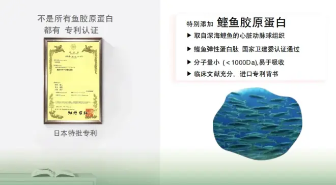 最好的胶原蛋白,来自海中,而非陆地。享未来采用日本特批专利的鲣鱼胶原蛋白,取自于深海鲣鱼的心脏动脉组织,相比陆生动物的胶原蛋白,其分子量更小,极易于人体吸收。