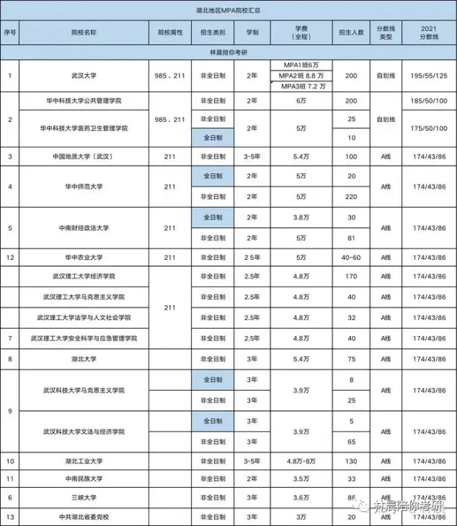 湖北地区MPA院校汇总/湖北地区有哪些学校可以报考MPA?武汉有哪些MPA学校可以选择?林晨陪你考研