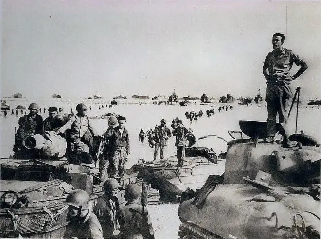 (十五)美军瞬间明白这个岛根本不是什么防御能力低下且可以轻易拿下的小岛,上面部署有日军凶悍的精锐部队,2天时间拿下贝里琉岛根本就是做梦,士兵们纷纷议论拿下这个岛恐怕需要10天甚至15天的血战。上午8点美军经过猛烈炮击与轰炸后再度登陆贝里硫岛,这次美军更换登陆地点,并且不再对整个岛屿进行漫山遍野的炮击与轰炸,而是重点炮击美军登陆地段的滩头,彻底轰平美军的预定登陆地点以及滩头阵地,使美军登陆部队获得一片安全的滩头。美军这次登陆未在滩头遇到抵抗,这倒不是日军被打死,而是美军这次登陆的地点正好就是日军防御最弱的区域,这里一马平川周围被高地丘陵包围,日军的阵地在丘陵地里,在开阔地上并无布防。日军步兵第2联队认为美军不大可能会在这个地形上登陆,因为这里太开阔,在这里很容易遭到周围高地上的火力夹射,很容易被反冲击打下海,但美军偏偏就在这实施第二次登陆。这次登陆中美军小心翼翼的推进,并很快将8辆M4A2坦克输送上滩头。美军也同样担心日军发动反冲击,所以第一时间就把M4A2坦克运了上去,预防日军的反击并为步兵充当移动火力点。而这决定毫无疑问是正确的,事实上如果不是及时运这8辆M4A2坦克上去,美军第二次登陆还是被日军打下海。 (十六)美军第二次登陆后日军很长时间不见动静,美军陆战1师得以将部队与装备一波波送上贝里琉岛。日军步兵第2联队的中川州男指挥官认为日军弹药不多,没有条件与美军进行持续火力交战,索性让美军大部队上来,一次就给美军个决定性重创,让美军从此胆寒。当美军选择新地点登陆后日军得意地笑了起来,美军的登陆地面3面被丘陵与高地围着,而且日军就在丘陵与高地上。美军向岛屿纵深推进并不容易,而且这片空地并不大,美军海军陆战队第1师团的部队拥挤在这里密度太大,容易被火力毁伤。日军一如果发动反冲击,美军一有闪失整个海军陆战队第1师都要报销。此外美军海军陆战队登陆后美军的舰队不停的炮击美军场地周围的高地,以掩护海军陆战队第1师的安全,日军也不能冒险把部队拉到地面上对美军展开反冲击。中川州男大佐命令日军对登陆美军进行监视,同时又下令抽出1支1000人的反击部队。中川州男认为美军的舰炮掩护虽然厉害,但这样高强度的炮击必然会导致弹药消耗过大而停止。美军虽然有弹药船跟随,但补充弹药需要时间,经过一段时间的密集炮击后美军的舰炮就必然有个间歇过程,这时就是日军把部队拉到地面并打美军下海的最佳时机。 (十七)日军步兵第2联队最后决定在15日当天就给美军决定性攻击,但步兵第2联队总兵力只有3200多人,除了步兵第2联队以外岛上还有海军第45警备队、陆军海上机动第1旅团独立步兵第346大队以及第14师团的坦克搜索队,总兵力也不过区区5000人。要确保万一反击失败还具有足够的守卫兵力,最多只能抽出1000步兵进行反冲击。而美军登陆部队根据观察高达1.5万人,仅靠1000名步兵反冲击1.5万美军成功的把握并不大,所以统领全岛日军作战的步兵第2联队联队长中川州男大佐决定发动反冲击时第14师团坦克队部(16辆95式轻型坦克)出战,反冲击发动时坦克队的95式轻型坦克从侧翼高地全速冲入美军营地,沿海岸方向猛冲美军后方,摧毁美军滩头物资,大量射杀美军士兵制造混乱。两翼高地发射火力打击混乱中的美军,随后日军1000步兵正面冲击美军营地,确保一举击溃美军。下午美军的舰炮轰击停息了,而美军海军陆战队1师向周围高地突破的企图也失败。日军在高地上修筑有大量难以观察到的隐蔽火力点,而且构筑大量坑道,美军的炮击不起作用。美军数次推进都败了下来,美军发现日军枪法奇准,日军稀稀落落的枪声带来的却是不小的伤亡。