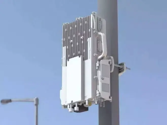一个5G基站,大概只有这么一点大,看起来非常像路由器,实际上,他也就是一个略大一号的路由器。