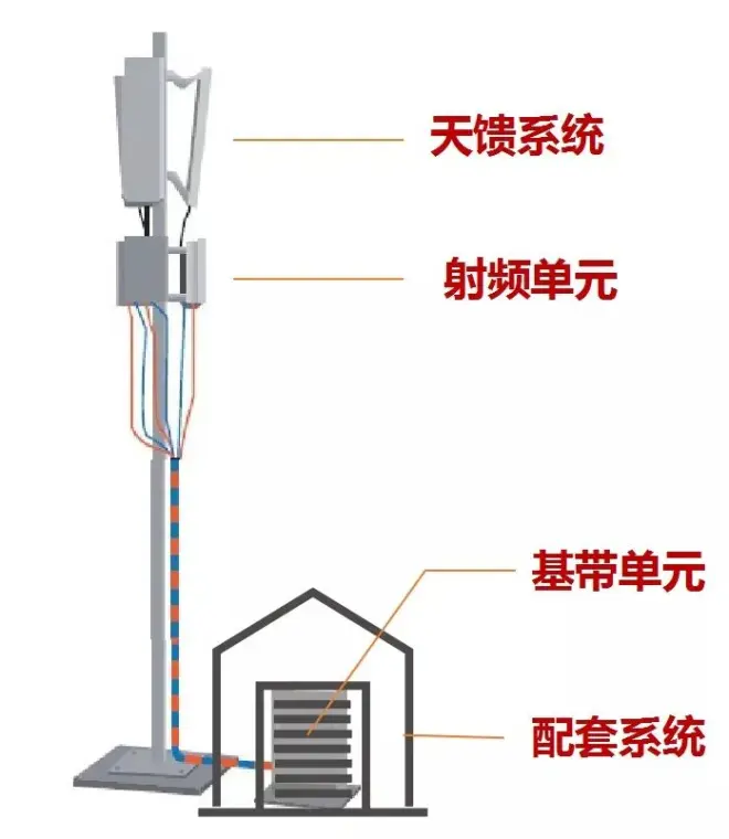 天馈系统:负责信号的发送和接收,包含天线和馈线;射频单元:负责信号的生成和提取,我最重要的部分;基带单元:负责信息的加工和处理,核心的中的核心;配套系统:为上述各个系统提供支撑,包含铁塔,机房,电源空调等设备。