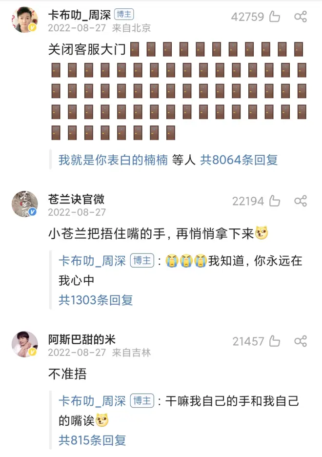2022-08-27微博回复:《余情》送走女主:我都想捂住我的嘴