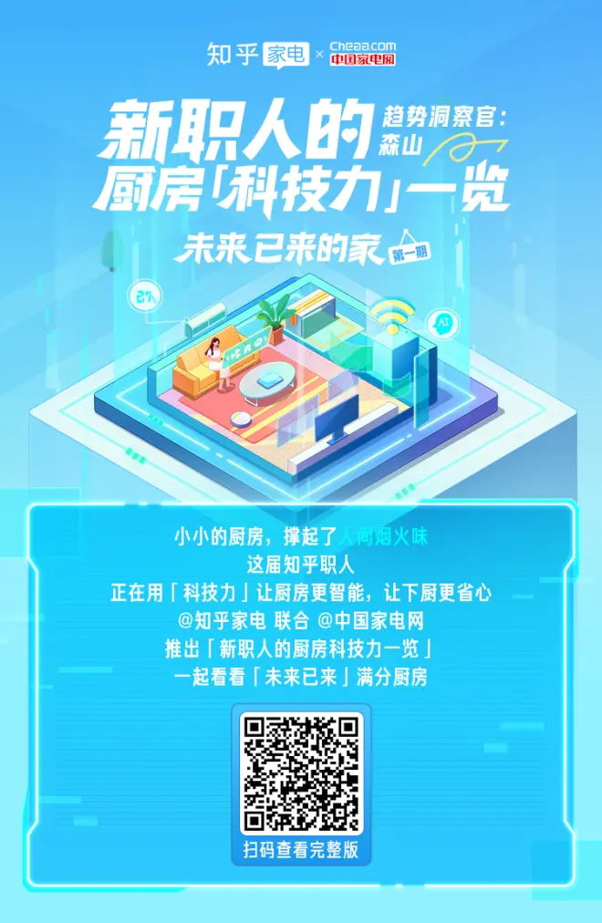 什么是“去家务化”的未来厨房?8 月 14 日,知乎联合中国家电网发布了「新职人的厨房科技力一览」,提供了一份关于「未来厨房」的家电消费洞察报告。