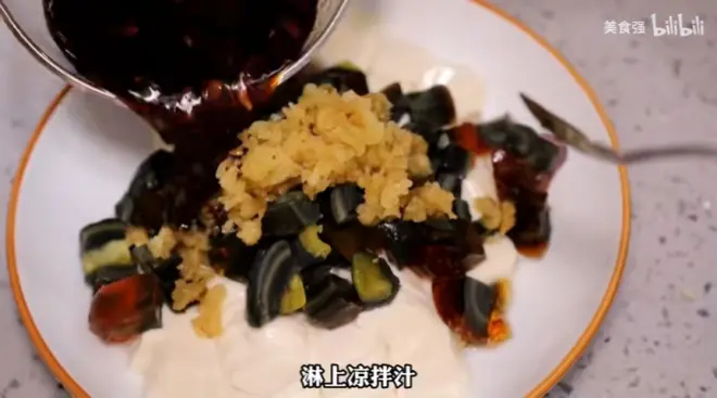 碗汁:蒜泥、盐、白糖、鸡精、味极鲜、香醋、香油