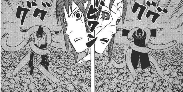 原本压制着佐助与鼬的兜在自己的精确操作下还斩断了鼬的身体,结果却陷入了无限循环。原来是在兜在施展无机转生之术时与鼬的对刀之中埋下了伊邪那美的种子。