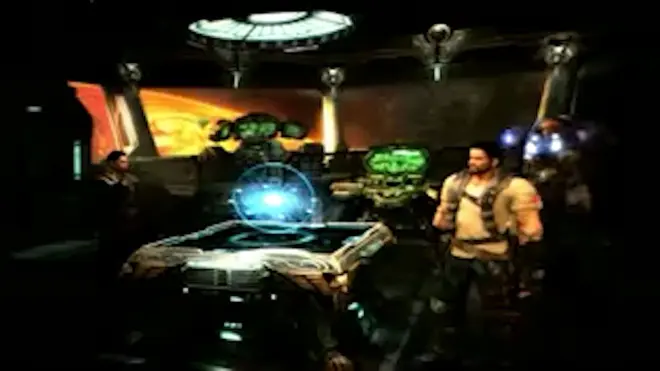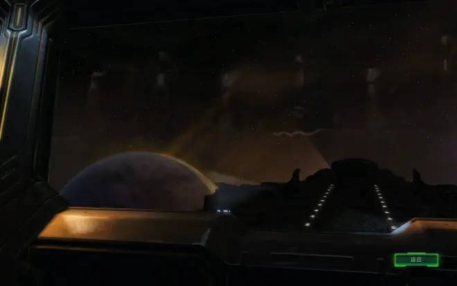 窗外休伯利安号的舰身不必多说。值得一提的是,你能看到多少舰身,游戏内模型就只保留了多少舰身,所有不在舰桥舷窗视野范围内的部分都进行了删除,这也算是游戏优化的常见伎俩了。至于星球,2007年的版本中应该是使用了真正的3D星球模型(视频画质过差,看得不是很清楚,不是很确定),对其具体的前世今生的探讨放在舷窗的部分。