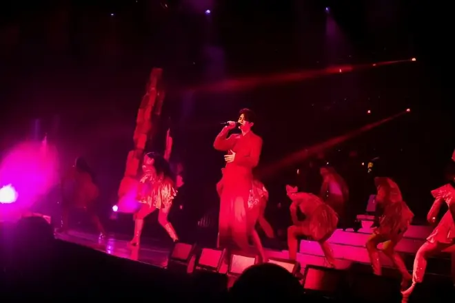 从现场照片来看,他的唱功和之前的演唱会想必并没有什么改变,但此次他以一身合体的红色西装开场,明显有着特定的目的。