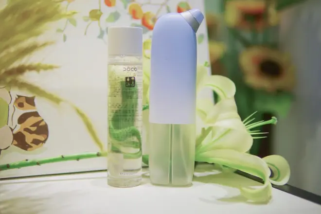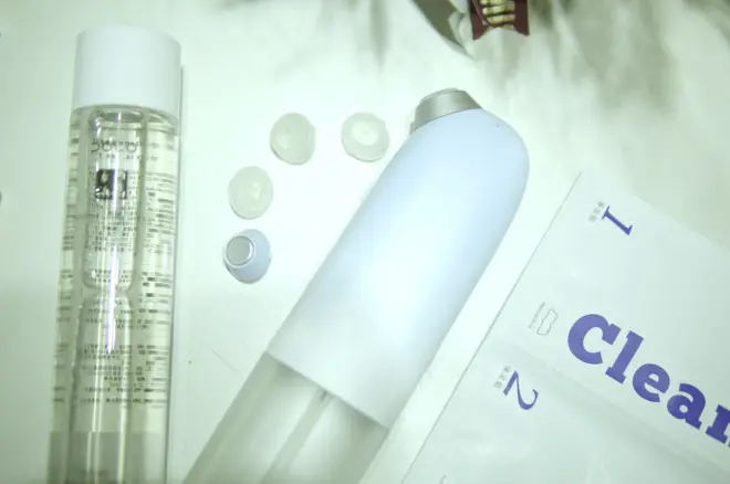 DOCO冷热敷全能小气泡黑头仪除了仪器本身外,配件比较丰富,有三个用来吸附不同位置的吸嘴,一盒导出贴和保湿贴,一大瓶清洁液。