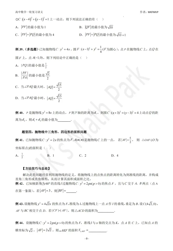 高中数学一轮复习讲义(专题40 抛物线及其性质)的评论 (共