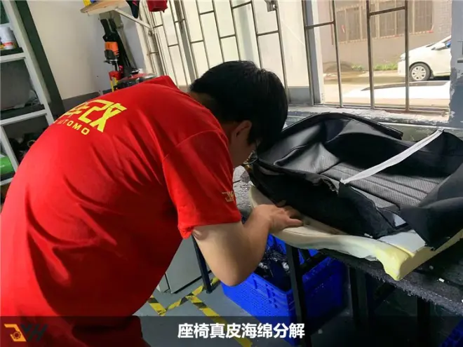 座椅分解中,分解后的座椅需要进行座椅真皮打孔工序,最后还需要添加上一层高效减震缓冲层,三管齐下,让改装后的座椅更加柔软舒适,让您拥有更贴心的乘坐享受。