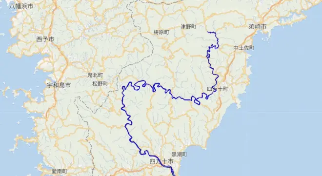 以高知县高冈郡津野町的不入山为源头,在县的中西部呈倒S形蜿蜒曲折,汇集了众多支流,最后在四万十市注入太平洋。那么既然提到四万十市,这里就需要对这座城市做一个概述。