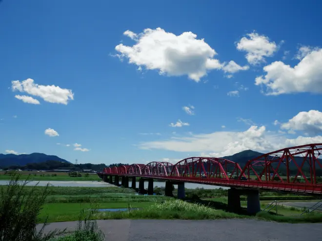 四万十市的市中心,有一座较为年轻的赤铁“渡川大桥”,跨越城市的两端,是连接四万十市南北两头的交通要道。横跨于四万十川之上的渡江大桥承载了当地几代人的记忆,形成一道有着别样趣味的特殊风景线。