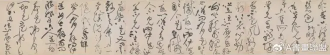 黄庭坚草书的成熟还得益于其书外功的参悟。除其上述“于燹道舟中,观长年荡桨,群丁拔棹,乃觉少进,喜之所得,辄得用笔”外,他还有一段自道可说明因缘:“余寓居开元寺夕怡思堂.坐见江山。每于此中作草,似得江山之助。然颠长史、狂僧皆倚而通神入妙。余不饮酒,忽五十年,虽欲善其事,而器不利,行笔处,时时蹇蹶,计遂不得复如醉时书也。”张旭、怀素作草皆以醉酒进入非理性忘我迷狂状态,纵笼挥洒,往往变幻莫测、出神入化。黄庭坚不饮酒,其作草全在心悟,以意使笔。然其参禅妙悟,虽多理性使笔,也能大开大合,聚散收放,进入挥洒之境。而其用笔,相形之下更显从容娴雅,虽纵横跌宕,亦能行处皆留,留处皆行。黄庭坚所作《诸上座帖》等佛家经语诸草书帖,乃真得其妙理者。也正由此,黄庭坚开创出了中国草书的又一新境。