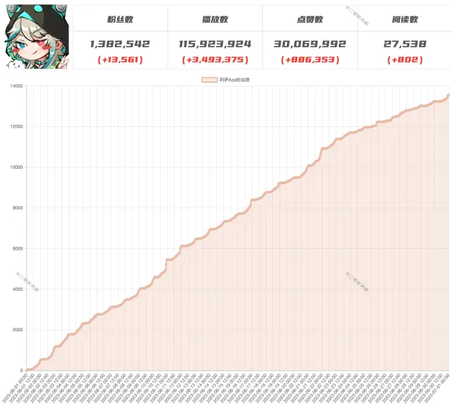 观看指南: UP名字可点击跳转;增长数据红色为增加, 蓝色为无变化,绿色为减少;预测数据 红色可信度最高,蓝色其次,黑色最低