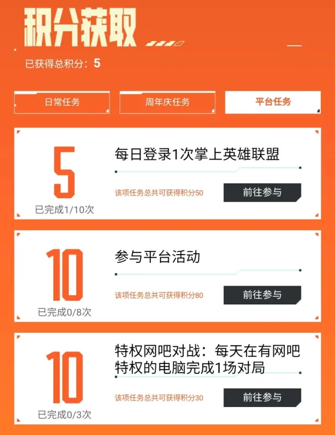 我拿一个平台试了一下,只要绑定上英雄联盟账号,转到活动界面看个视频就能领积分了,其他的平台活动大致都差不多。