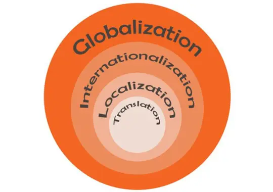 全球化(Globalization)是将您的产品放在全球市场进行概念化的的过程,这样只要稍加修改就可以在世界任何地方销售。它解决了在全球范围内发布产品的相关业务问题,例如在适当的国际化和产品设计之后在整个公司内集成本地化。在缩写“g11n”中,数字 11 指的是“g”和“n”之间的十一个字母。这四个术语通常统称为首字母缩写词“GILT”,如果将它们想象成一个“靶心”图,就很容易理解。全球化涵盖了将您的产品系列推向全球的整个概念。进行国际化是为了使产品能够被本地化。最后,翻译是整个过程的“基础”组成部分,因为它代表了语言转换。G11n、i18n、l10n 负责并帮助管理为新地区准备产品的文化和技术元素。