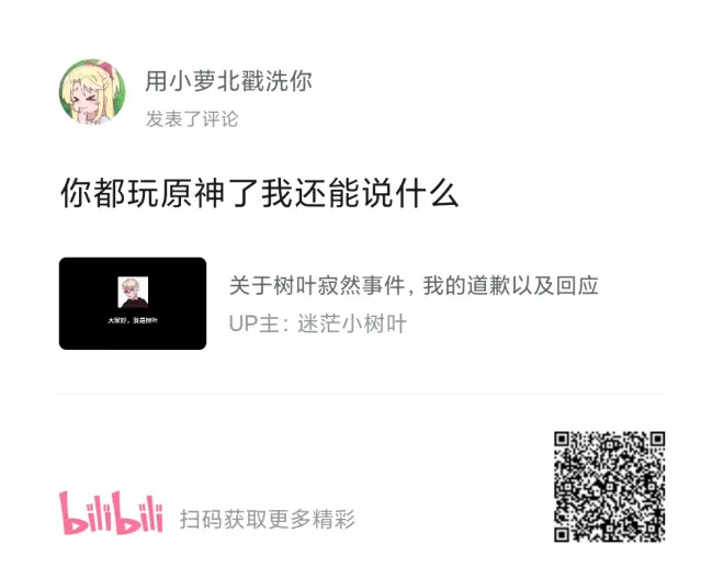 记录一下树叶道歉视频中拐原的评论的评论 (共