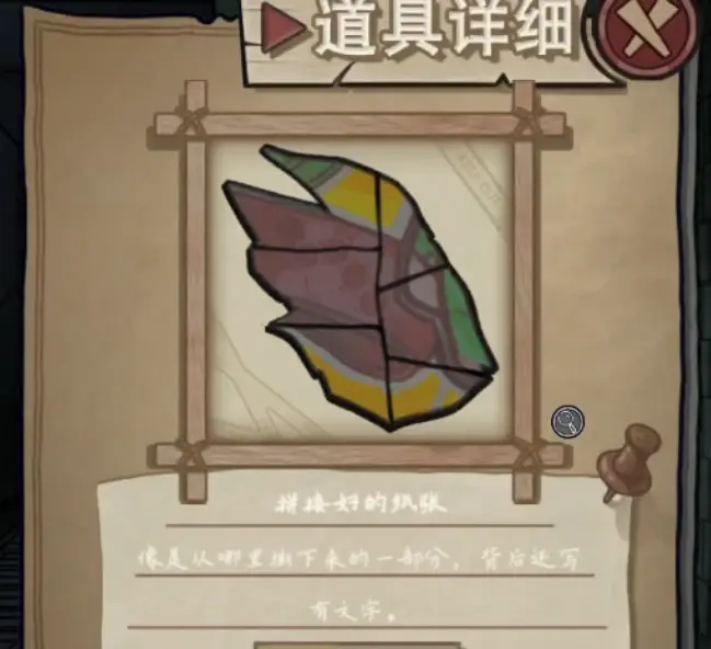 回到休息处,将碎片拼到海报上,考验眼神的线索来了,仔细看挂件的腕带,绿色上面有三角形图案,红色上面有圆形图案,查看一下背包上端露出三个图形密码,那蓝色只能是剩下的方形了,背包挂件的颜色顺序为绿红绿蓝红蓝,换算为图案就是三角形-圆形-三角形-方形-圆形-方形,按照顺序按下背包按键就能打开背包获得一把螺丝刀。