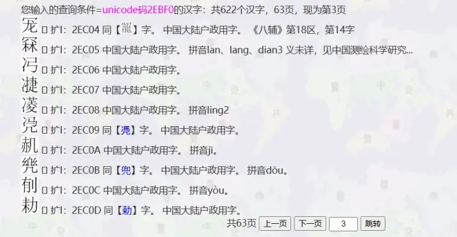 以叶典网提供的CJK-I字为例,叶典网http://yedict.com/zslistUni.asp?uni=2EBF0。二〇二三年八月十四日